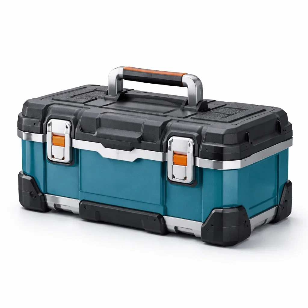 Cassetta degli attrezzi in plastica ABS con chiusure in acciaio azzurro e nero 52x25x30 cm