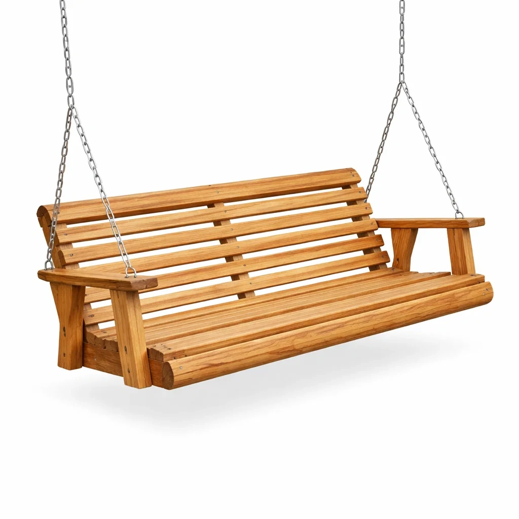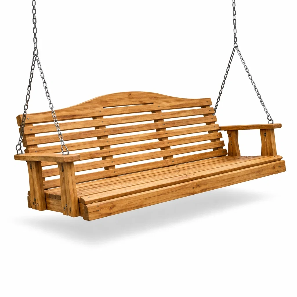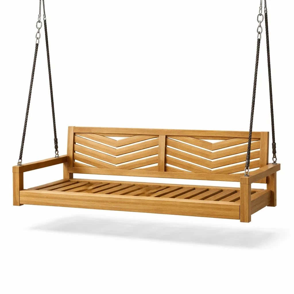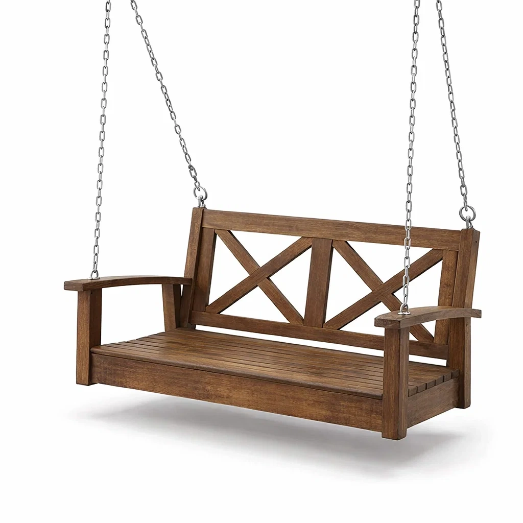 Altalena da veranda in legno con catene in acciaio 150x60x55 cm marrone