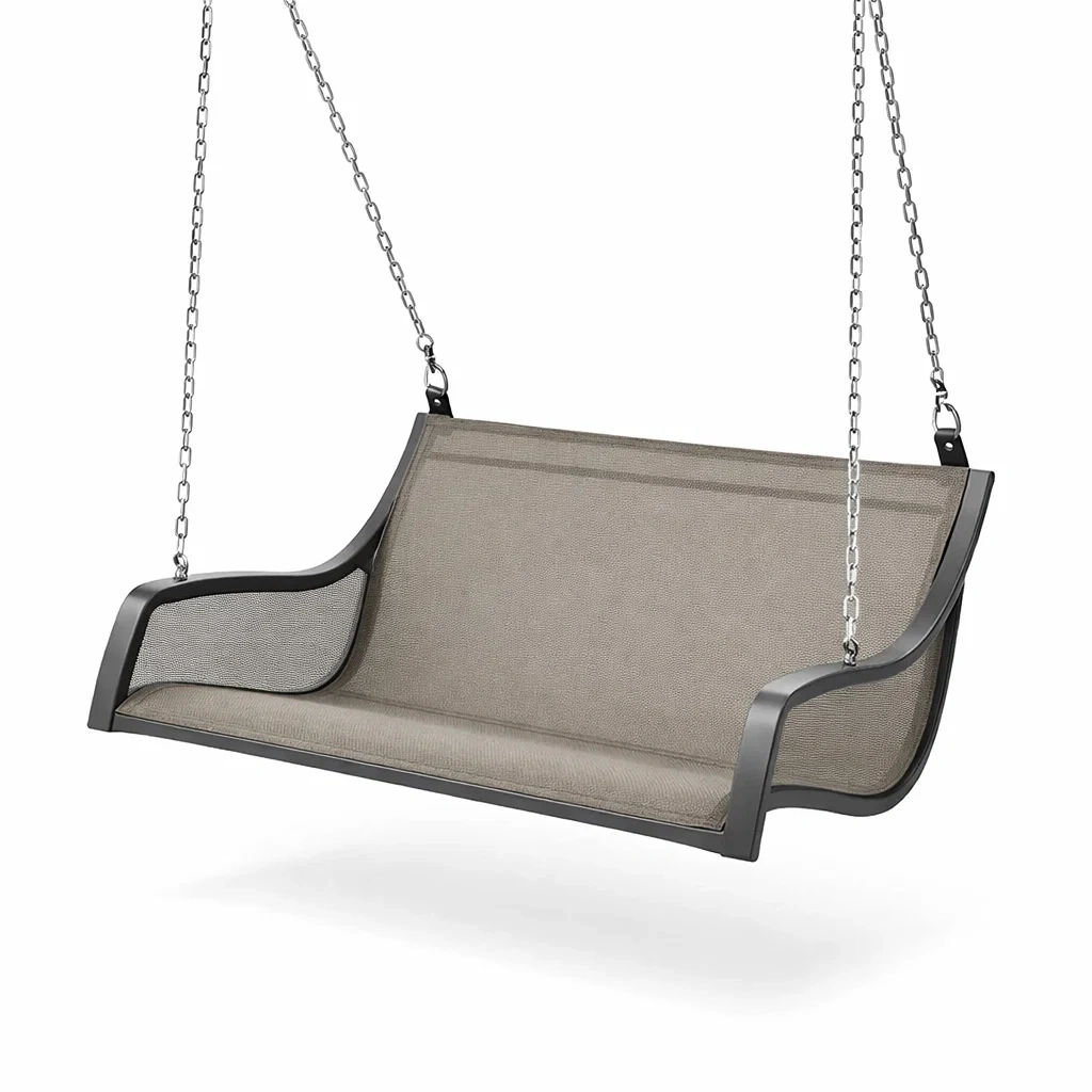 Altalena da veranda a due posti in alluminio e tessuto a rete grigio