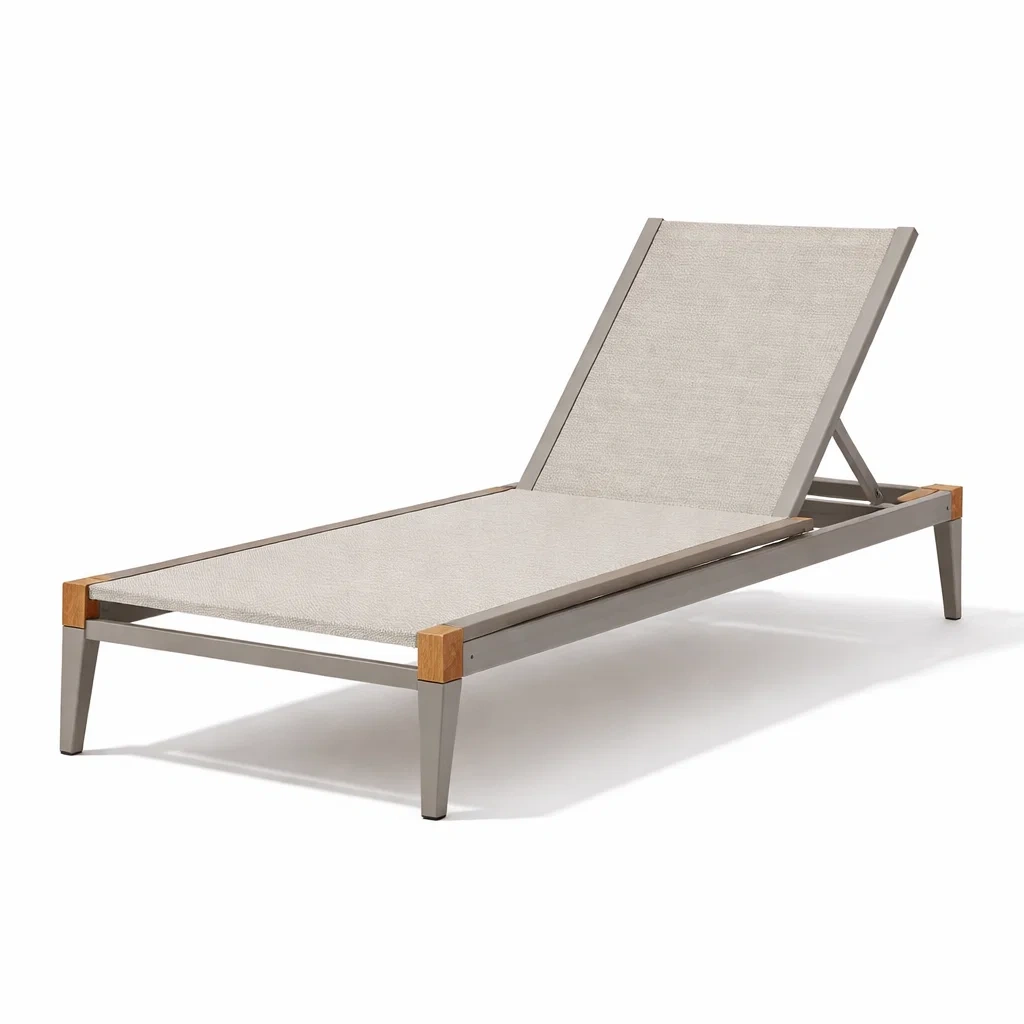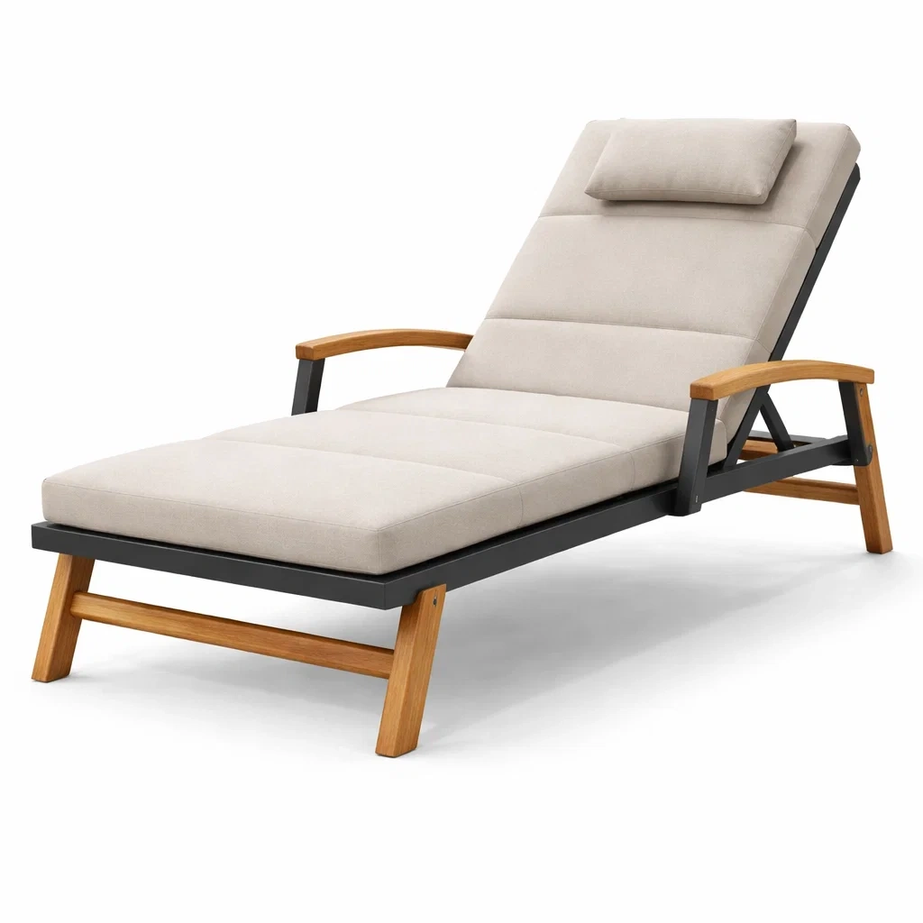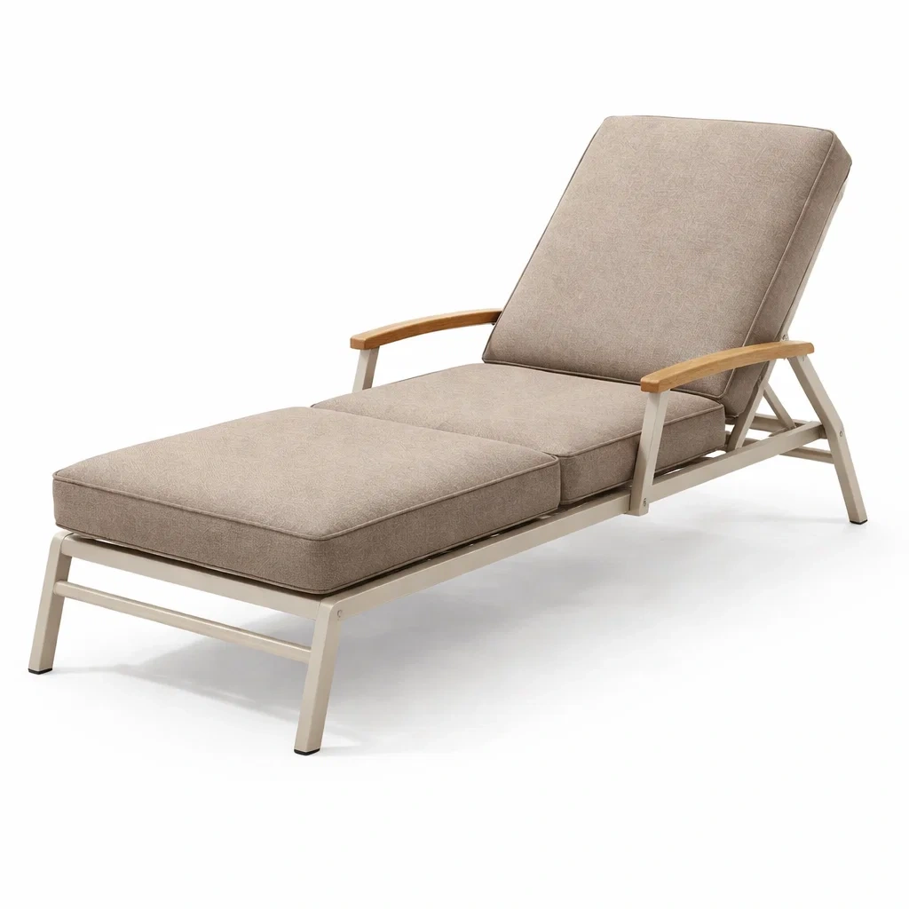 Sdraio in alluminio e legno con cuscino beige