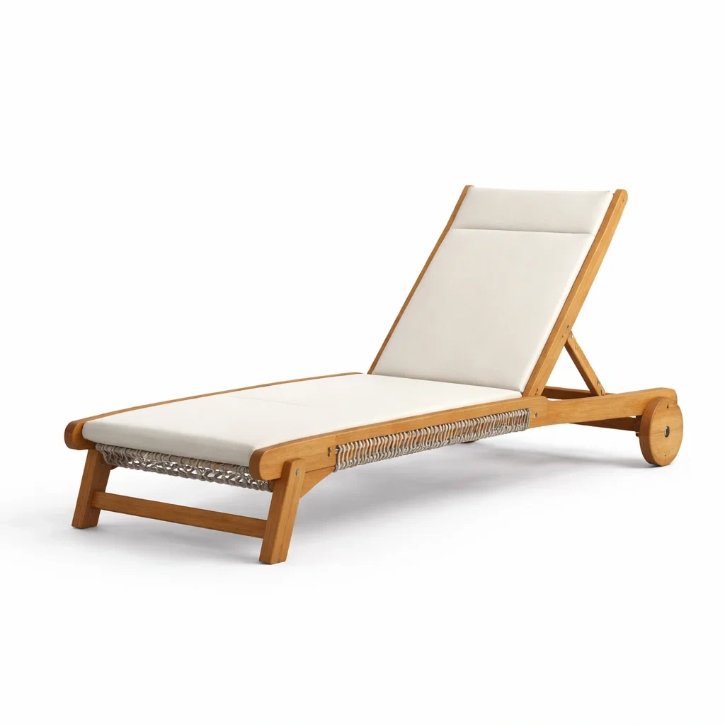 Sdraio in teak con cuscini in poliestere regolabili