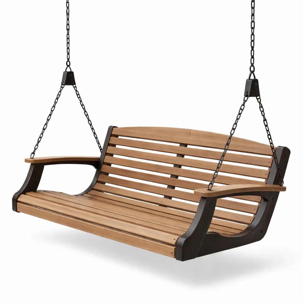 Altalena da veranda sospesa in legno e acciaio