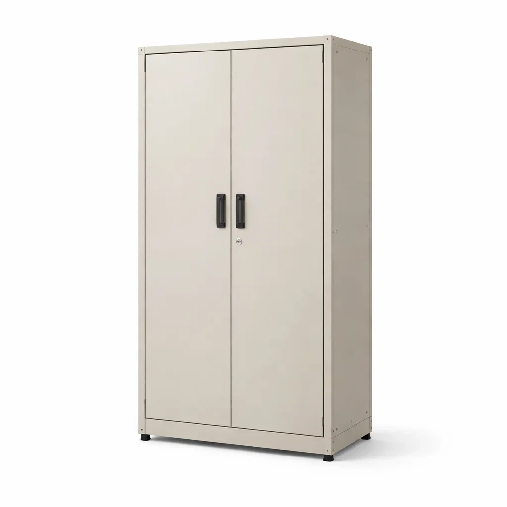 L'armadio è realizzato in lamiera d'acciaio verniciata, con dimensioni di altezza 180 cm, larghezza 90 cm e profondità 45 cm.