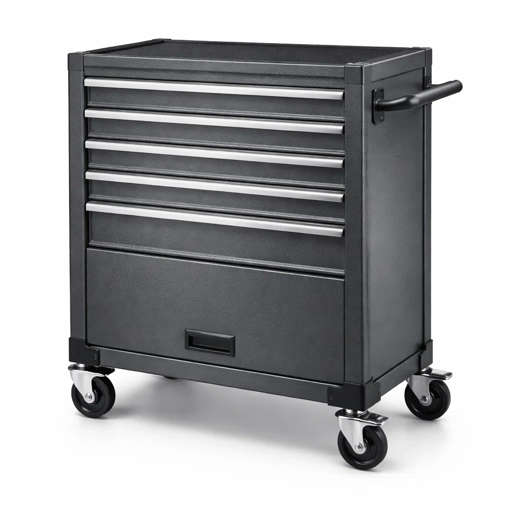 Questa cassettiera porta utensili è realizzata in acciaio verniciato a polvere con finitura nera. Include 6 cassetti per conservare e organizzare gli attrezzi. Le ruote girevoli sono dotate di blocco per garantire stabilità durante l'uso.
