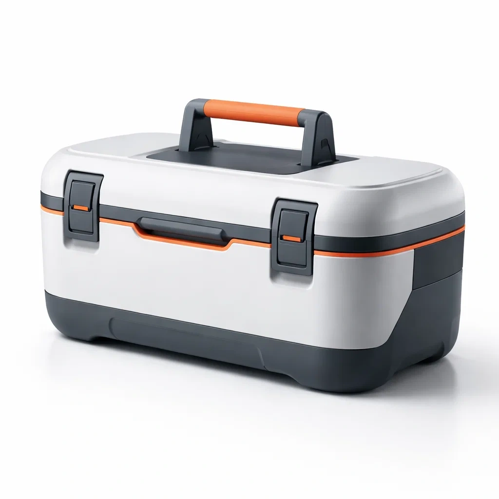 Cassetta degli attrezzi in plastica con manico arancione