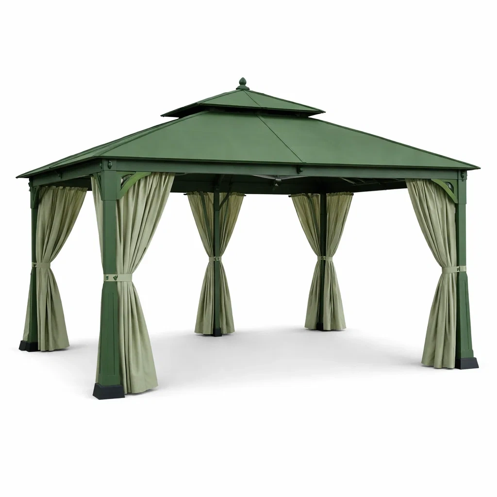 Design: Struttura solida con tetto a doppio strato e tende laterali incluse.