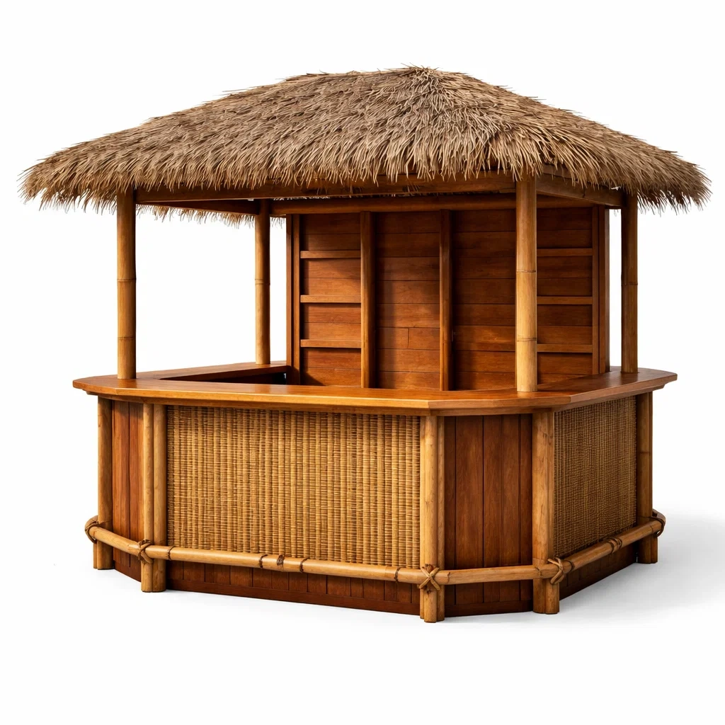 Materiale: Struttura in bambù, tetto in paglia naturale, rivestimento in rattan.
